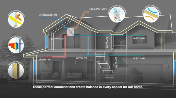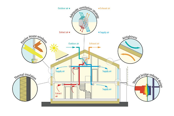 การดีไซน์ รวมไปถึงการก่อสร้าง ที่เรียกว่า Thermal Bridge อาจเรียกให้เข้าใจง่าย ๆ ว่า สะพานแห่งความร้อน ต้องดีไซน์ไม่ให้มีการเชื่อม หรือการไหลของความร้อนจากวัสดุหนึ่งสู่อีกวัสดุหนึ่ง ไม่อย่างนั้น ความร้อนจะถ่ายเทมาได้ ทำให้เครื่องปรับอากาศทำงานหนัก เราสร้างอาคารเหมือนตู้เย็น ที่มีประสิทธิภาพสูงในการจัดเก็บความเย็น