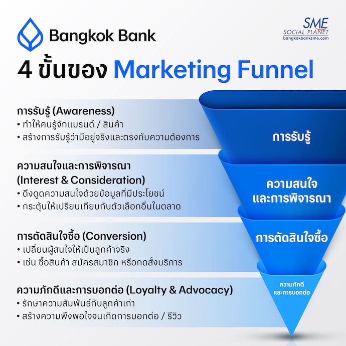 ขณะที่หัวใจของการตลาดไม่ได้อยู่แค่การทำให้ลูกค้าตัดสินใจซื้อแต่คือการทำให้พวกเขากลายเป็นลูกค้าที่ภักดีและพร้อมจะบอกต่อ ซึ่งเป็นเป้าหมายสูงสุดจาก Marketing Funnel ที่ช่วยสร้างการเติบโตอย่างยั่งยืนในระยะยาวให้กับธุรกิจได้