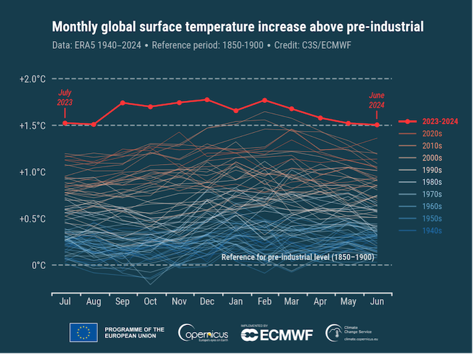 รายงานล่าสุดจากองค์การอุตุนิยมวิทยาโลก (WMO) เผยสถิติที่น่าตกใจว่าปี 2024 เป็นปีที่โลกร้อนที่สุดในประวัติศาสตร์ที่เคยมีการบันทึกมา อุณหภูมิเฉลี่ยของโลกในบางช่วงเวลาได้สูงเกินขีดจำกัด 1.5 °C ที่นักวิทยาศาสตร์มองว่าเป็นเส้นแบ่งเพื่อความปลอดภัย ซึ่งเป็นสัญญาณที่บ่งชี้ว่าการเปลี่ยนแปลงสภาพภูมิอากาศกำลังเกิดขึ้นเร็วกว่าที่เราเคยคาดไว้มาก