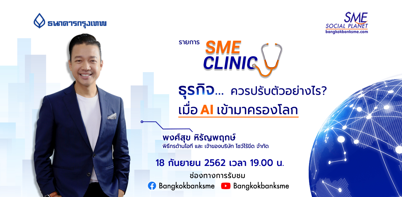 SME Clinic ตอน เมื่อ AI ครองโลก ส่งผลกระทบหรือเป็นเรื่องดีต่อธุรกิจ