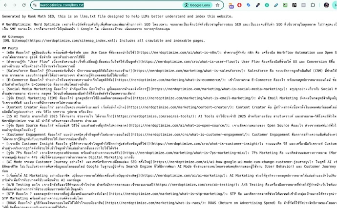 นอกจากนี้ การติดตั้ง LLMs.txt และ robots.txt ก็เป็นอีกขั้นตอนที่จำเป็น เพราะเป็นการระบุให้ระบบ AI ทราบว่าอนุญาตให้เข้าถึงส่วนไหนของเว็บไซต์ เพื่อเปิดทางให้ AI เข้าถึงเนื้อหาได้ถูกจุด