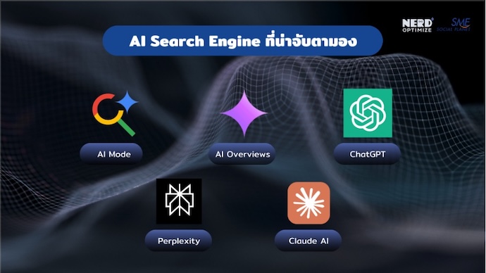 ข้อมูลเกี่ยวกับ AI Search ทั้งหมดนี้คือเกร็ดความรู้และกลยุทธ์ที่ได้รับคำแนะนำมาจาก NerdOptimize บริษัทรับทำ SEO, AEO แนวหน้าของเมืองไทย ที่ตอนนี้ได้เห็นความสำคัญและโอกาสเติบโตของทุกธุรกิจ โดยเฉพาะในกลุ่ม SME จึงเริ่มเดินหน้าให้บริการทำการตลาดบนแพลตฟอร์มการค้นหาของเครื่องมือ AI พร้อมแชร์ความรู้เกี่ยวกับการทำ SEO ยังไงให้ตอบโจทย์ผู้ใช้งานและติด AI Search เพื่อให้ธุรกิจ SME พร้อมปรับกลยุทธ์ ไม่หวังพึ่งพาเฉพาะการทำ SEO แบบเดิมเพียงอย่างเดียว แต่ต้องพัฒนาเว็บไซต์และคอนเทนต์ให้เหมาะกับการทำงานของ AI เพื่อให้ AI รู้จักและเลือกใช้ข้อมูลของธุรกิจในการตอบคำถามของลูกค้าได้อย่างมีประสิทธิภาพมากยิ่งขึ้น