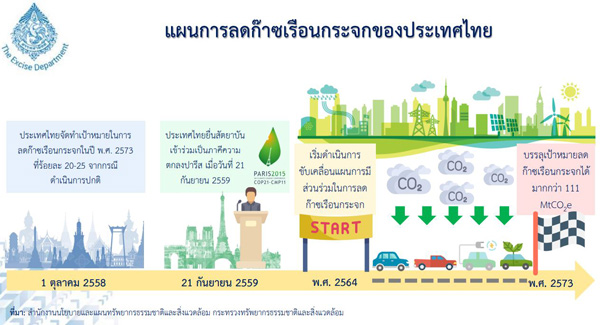 ทั้งนี้ประเทศไทยได้ประกาศในการประชุม COP 26 ว่าไทยจะวางแผนในการลดก๊าซเรือนกระจก และก้าวเข้าสู่สถานะ Net zero หรือ Net zero greenhouse gas emissions ให้ได้ภายในปี ค.ศ. 2065 และ Carbon natural หรือ ความเป็นกลางทางคาร์บอน ในปี ค.ศ. 2050 ซึ่งได้ตั้งเป้าการลดคาร์บอนไดออกไซด์ ปริมาณก๊าซเรือนกระจก จาก Maximum ของไทย 388 ล้านตันต่อปี ลงไปเหลือ 120 ล้านตันต่อปี ส่วนแผนระยะสั้น ประเทศไทยมีแผนที่ Nationally Determined Contributions หรือที่เรียกว่า NDC และจากนี้ไปจนถึง ปี ค.ศ. 2030 ตั้งใจว่าจะลดก๊าซเรือนกระจก ให้ได้ 40%