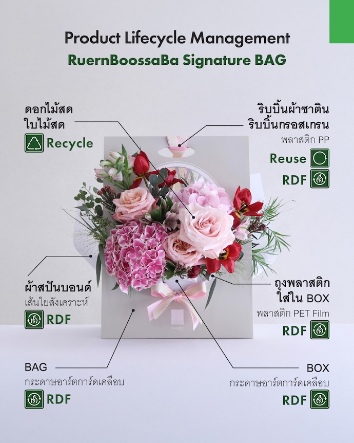 Environmental: เปลี่ยนการจัดหาดอกไม้ให้ยั่งยืน เน้นใช้ดอกไม้ไทยมากขึ้น แยกขยะอย่างเคร่งครัด ทำปุ๋ยจากดอกไม้ ตรวจสอบคุณภาพน้ำก่อนปล่อยทิ้ง และเริ่มเก็บข้อมูล Carbon Footprint