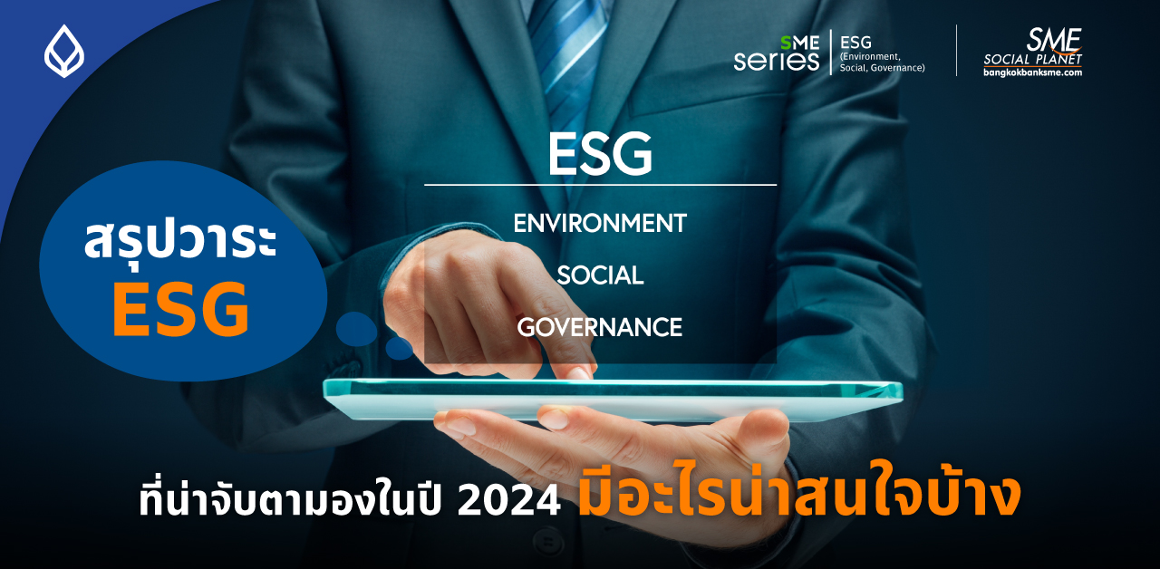 ทั้งหมดนี้ชี้ให้เห็นว่า ในปี 2024 เทรนด์ ESG ถือปีแห่งความเปลี่ยนแปลง ของภาคธุรกิจที่ต้องปรับตัวสู่ความยั่งยืน โดยจะมีความสำคัญและมีความเข้มข้นในการใช้กฎระเบียบเรื่องสิ่งแวดล้อมในการผลิตสินค้าอย่างมาก เนื่องจากธุรกิจขนาดใหญ่ได้รับความกดดันจากพันธมิตรทั้งในและต่างประเทศ ซึ่งเป็นผลมาจากการบังคับใช้กฎหมายเพื่อให้ธุรกิจลดการปล่อยมลพิษ ส่งผลต่อเนื่องมายังธุรกิจ SME ที่ทำงานร่วมกับธุรกิจขนาดใหญ่ ยิ่งไปกว่านั้นผู้บริโภคเริ่มให้ความสำคัญและใส่ใจกับสิ่งแวดล้อมมากขึ้น SME ที่ไม่เกี่ยวข้องกับธุรกิจขนาดใหญ่ ก็ต้องปรับตัวรับการเปลี่ยนแปลงสู่พัฒนาที่ยั่งยืน