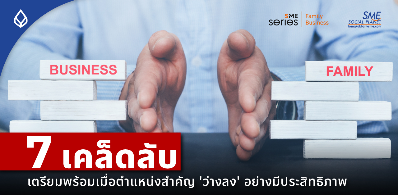 โดยบทความตอนนี้ จะขอพูดถึงการเตรียมพร้อมของธุรกิจครอบครัว กับการรับมือปัญหาจากตำแหน่งที่ว่างลงและจัดวางตัวผู้ที่จะสืบทอดแบบไร้รอยต่อได้อย่างมีประสิทธิภาพ ด้วยเคล็ดลับ 7 ประการ ดังต่อไปนี้