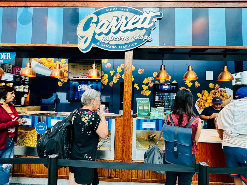 ดังนั้น จึงกลายเป็นที่มาของการเปิดร้านขายป๊อปคอร์นอย่างเป็นทางการแห่งแรกที่ชิคาโก ภายใต้ชื่อ Garrett Popcorn Shops (การ์เร็ต ป๊อปคอร์น ช็อปส์) และขายข้าวโพดคั่ว 2 สูตร ได้แก่ CaramelCrisp กับ CheeseCorn