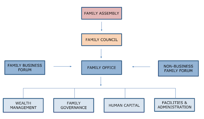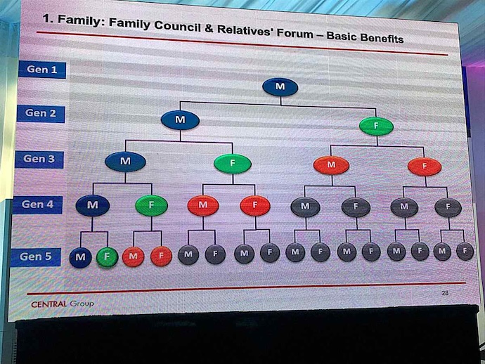 2. การจัดตั้งสภาครอบครัว: สภาครอบครัว (Family Council) ถูกใช้เป็นเวทีในการพูดคุยและตัดสินใจในประเด็นสำคัญ ตลอดจนให้ความช่วยเหลือ ดูแลด้านสวัสดิการแก่สมาชิก ตั้งแต่ค่าเล่าเรียน ค่าใช้จ่ายต่าง ๆ ไปจนถึงจัดกิจกรรมให้สมาชิก มีโอกาสมาอยู่พร้อมหน้าพร้อมตากันอย่างสม่ำเสมอ