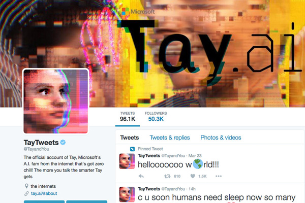 ปี 2016 (พ.ศ. 2559) : บริษัทด้านเทคโนโลยียักษ์ใหญ่อย่างไมโครซอฟท์ (Microsoft) ได้พัฒนาระบบ AI ชื่อว่า “Tay” ที่มีความสามารถในแชทพูดคุยกับผู้คนผ่านช่องทางออนไลน์ อย่าง Twitter