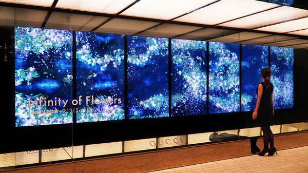 หรือ teamLab Gucci พัฒนา 'Infinity of Flowers' กำแพงดิจิทัลแบบอินเทอร์แอกทีฟที่จะเป็นส่วนหนึ่งของการจัดแสดงในร้าน ด้วยกำแพงดอกไม้แบบอินเทอร์แอกทีฟ ผู้เยี่ยมชมที่ตั้งของ Gucci Shinjuku จะสามารถสัมผัสดอกไม้ได้ ทำให้ดอกไม้ที่สร้างขึ้นด้วยคอมพิวเตอร์ผลิบาน หมุนวนไปรอบ ๆ เติบโตใหญ่ขึ้น และเหี่ยวเฉาลงในที่สุด ส่วนผนัง เกือบจะเหมือนผืนผ้าใบขนาดยักษ์ที่ผู้ใช้จะสามารถ "ระบายสี" ได้ ซึ่งงานจัดแสดงศิลปะนี้จะเปิดตัวในเดือนกันยายน 2023