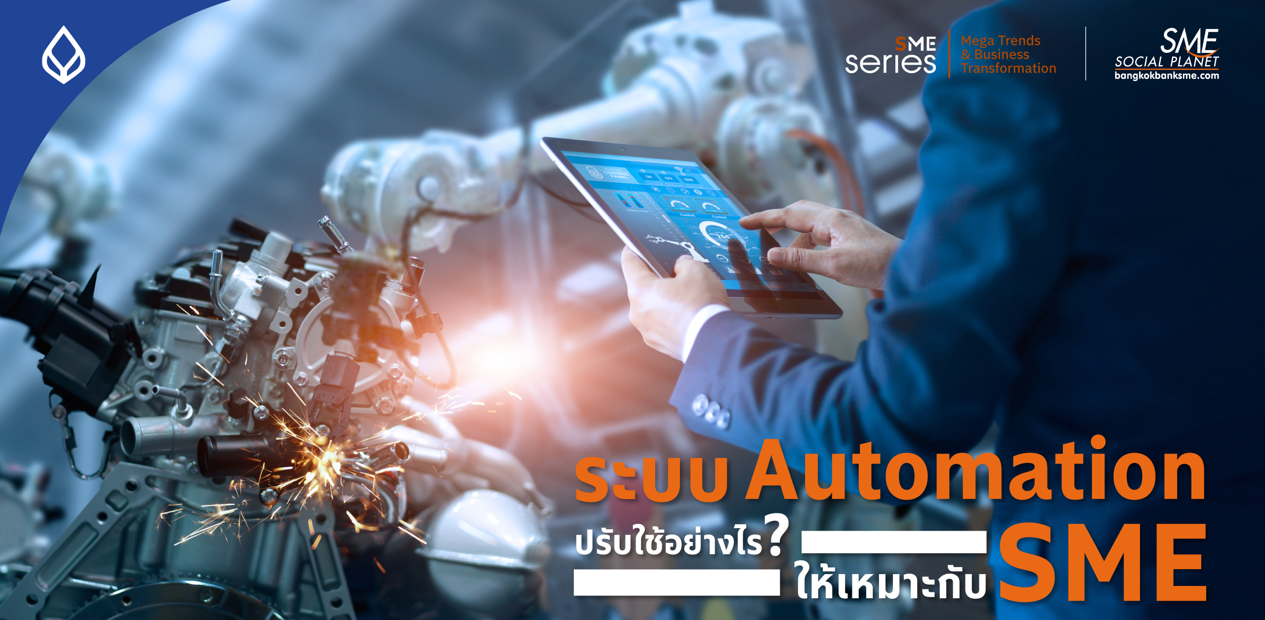ในอดีตโลกของเราได้พัฒนาตัวเองครั้งใหญ่จากการปฏิวัติอุตสาหกรรม ด้วยการนำระบบ Automation หรือเทคโนโลยีอัตโนมัติ เข้ามาใช้พร้อมกับเริ่มมีบทบาทมากขึ้นเรื่อยๆ ในการทำงานของภาคอุตสาหกรรมทั่วโลกในปัจจุบัน โดย Gartner บริษัทวิจัยและให้คำปรึกษาชั้นนำของโลกด้านไอที ได้คาดการณ์ว่าในอนาคตอันใกล้ระบบ Automation จะก้าวไปสู่ Hyperautomation (ระบบอัตโนมัติขั้นสูง) กลายเป็นอีกหนึ่ง Mega Trend เปลี่ยนโลก ซึ่งก่อนที่จะไปถึงจุดนั้น ภาคธุรกิจ ผู้ประกอบการ รวมถึง SME ของไทย จึงควรเร่งสปีด Business Transformation เพื่อก้าวให้ทันเทคโนโลยี ซึ่งจะต้องปรับตัวอย่างไรในการนำมาใช้ในองค์กรบ้างนั้น SME Series นี้หาคำตอบมาให้แล้ว