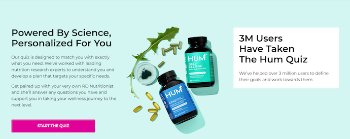อีกตัวอย่างที่น่าสนใจ และผู้ประกอบการสามารถนำไปประยุกต์ใช้ตามได้แบบง่ายๆ ก็คือ HUM Nutrition บริษัทขายวิตามินในลอสแอนเจลิส ที่เปิดโอกาสให้กลุ่มเป้าหมาย เข้าไปทำแบบทดสอบบนเว็บไซต์ เพื่อรับคำแนะนำเกี่ยวกับการดูแลร่างกายด้วยวิตามินเฉพาะบุคคลจากนักโภชนาการของ HUM ซึ่งแนวทางนี้ ช่วยให้แบรนด์สามารถเข้าใจถึงปัญหาของลูกค้า และให้คำแนะนำได้แบบตรงจุด