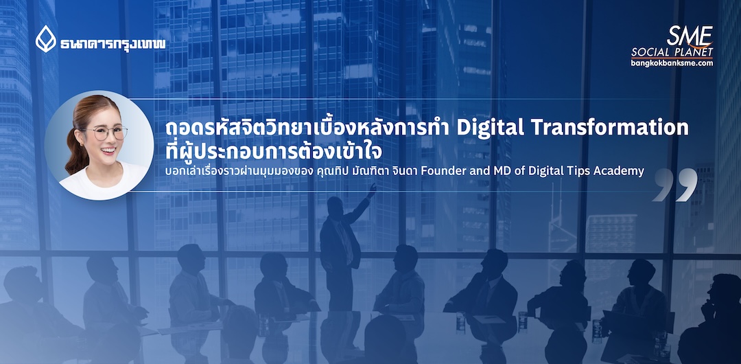 ถอดรหัสจิตวิทยาเบื้องหลังการทำ Digital Transformation ที่ผู้ประกอบการต้องเข้าใจ บอกเล่าเรื่องราวผ่านมุมมองของ คุณทิป มัณฑิตา จินดา