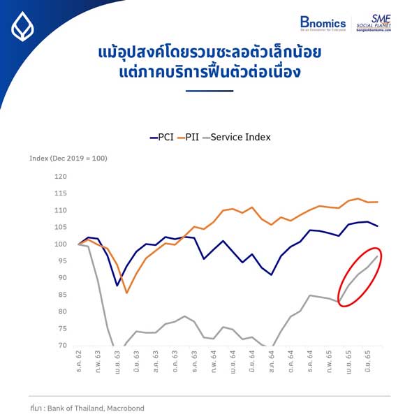 ส่งผลให้ดัชนีภาคบริการ (Service Index) โดยรวมเมื่อปรับผลของฤดูกาล ปรับตัวขึ้นมาสู่ระดับเกือบเท่ากับปลายปี พ.ศ. 2562 ซึ่งเป็นช่วงก่อนการแพร่ระบาดแล้ว