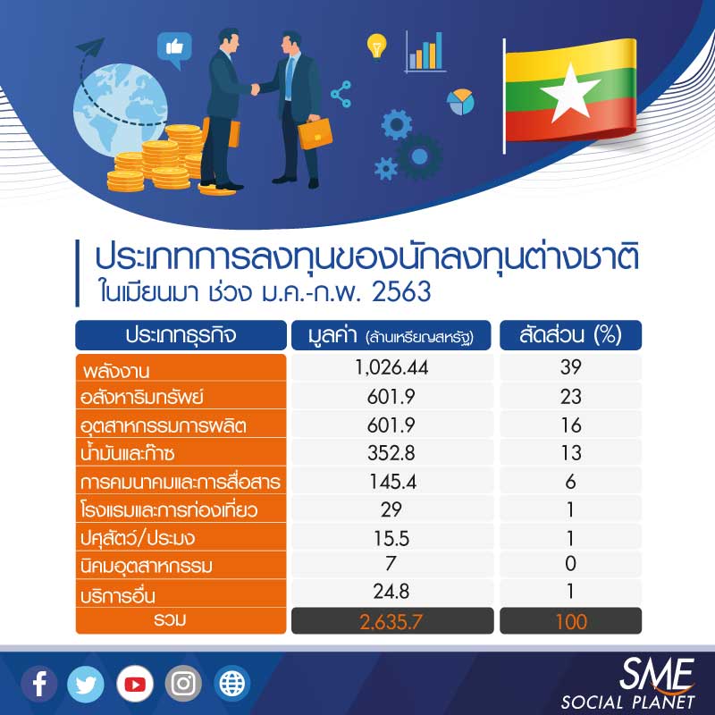 โดยคณะกรรมการส่งเสริมการลงทุนแห่งเมียนมา (MIC) มีมูลค่า
