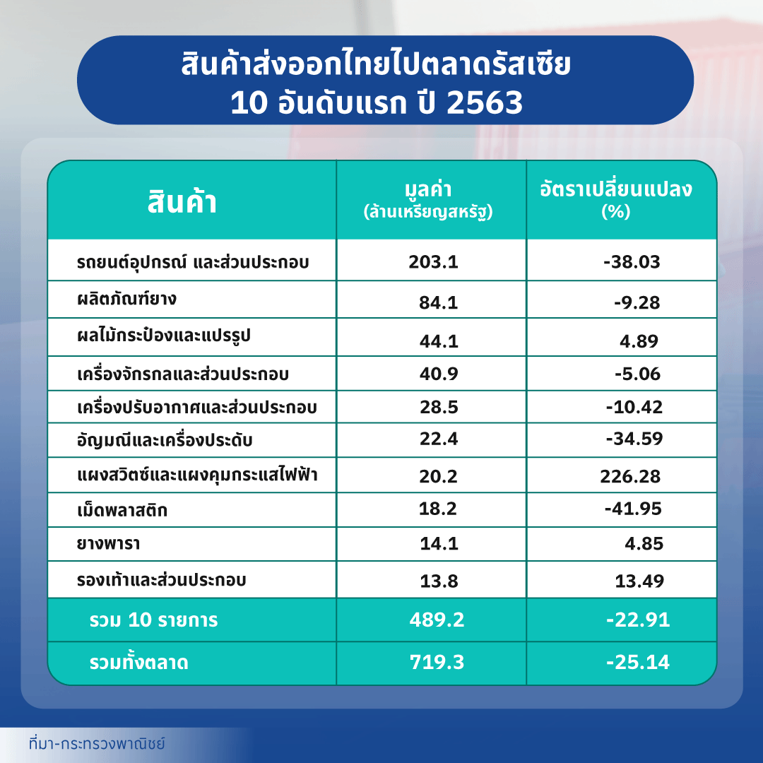 แนวโน้มเศรษฐกิจรัสเซียที่ยังไม่ฟื้นตัวในปีนี้จะส่งผลเชื่อมโยงกับการส่งออกของไทย