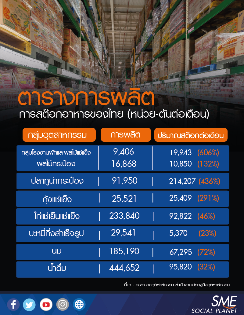 มีสต๊อก195-436% กลุ่มอาหารทะเลแช่แข็ง130-291% กลุ่มไก่ และปศุสัตว์แปรรูป เช่น