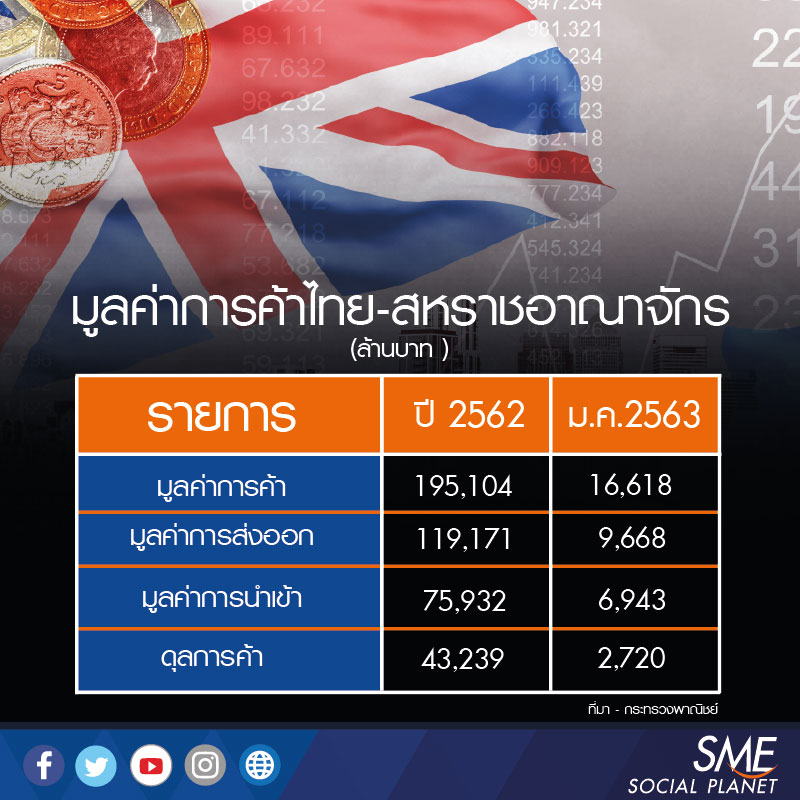 โดยเบื้องต้นกรมได้ชี้ให้เห็นถึงโอกาสของผู้ประกอบการไทยในตลาดยูเค ในฐานะตลาดส่งออกที่สำคัญในปี 2561 ไทยส่งออกไปยูเค มูลค่า 4,027 ล้านเหรียญสหรัฐฯ และนำเข้ามูลค่า  3,012 ล้านเหรียญสหรัฐ