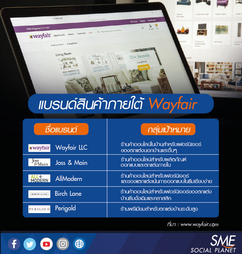 Wayfair มีแบรนด์สินค้าที่เจาะกลุ่มลูกค้าเป้าหมายที่มีไลฟ์สไตล์หลากหลายถึง