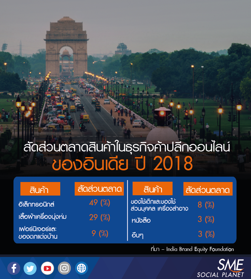 และมีร้านค้าปลีกสมัยใหม่หรือ Modern Trade อยู่เพียง 9% เท่านั้น แต่อย่างไรก็ตามเป็นที่น่าสังเกตุว่า “ร้านค้าปลีกออนไลน์” ก็เริ่มมีความนิยมเพิ่มขึ้นในอินเดีย
