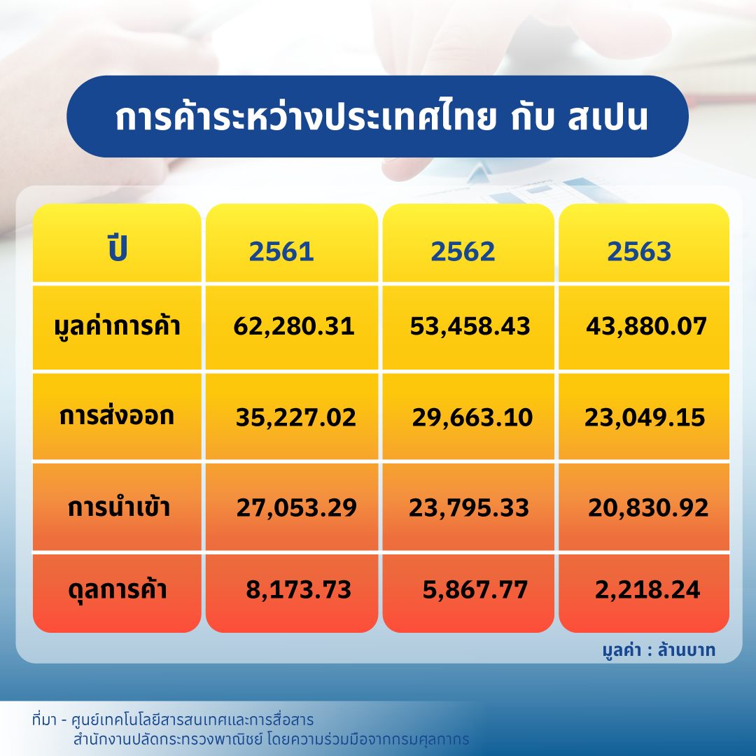5 อันดับสินค้าส่งออกไทยไปสเปนปี 2562