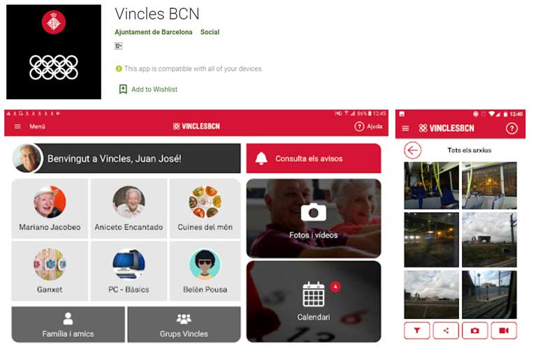 แอปพลิเคชั่น VinclesBCN ถูกออกแบบมาเพื่อกลุ่มผู้สูงอายุโดยเฉพาะจึงใช้งานง่าย