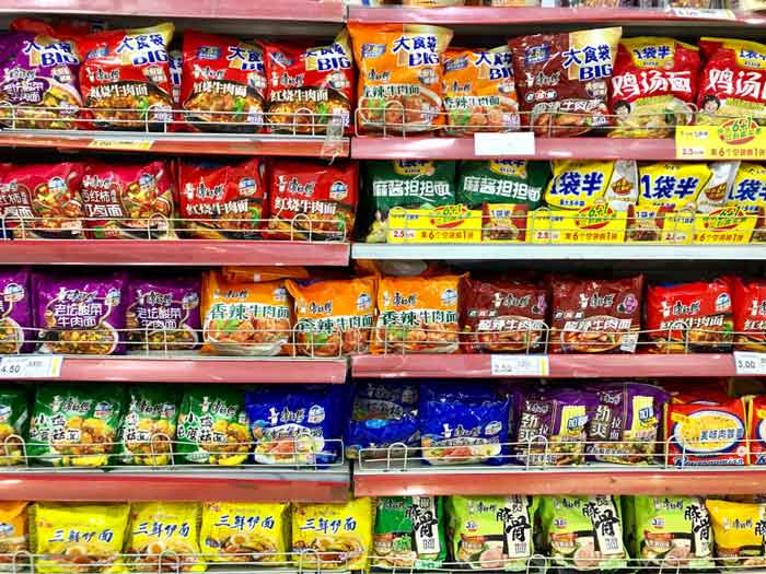 บะหมี่กึ่งสำเร็จรูปแบรนด์ดัง ได้แก่ Nongshim และ SAMYANG ของเกาหลีใต้ได้บุกตลาดจีน ตั้งแต่ยุค 1990s ซึ่งปัจจุบันแบรนด์ Nongshim ได้ตั้งโรงงานในจีนรวม 2 แห่ง ตั้งอยู่นครเซี่ยงไฮ้และเมืองเสิ่นหยาง มณฑลเหลียวหนิง โดยสินค้ากว่า 80% ที่จำหน่ายในตลาดจีนได้ผลิตในแดนมังกรเอง เนื่องจากสามารถลดต้นทุนการผลิตบะหมี่กึ่งสำเร็จรูป ส่งผลให้มีราคาจำหน่ายอยู่ระหว่าง 4 - 5 หยวนต่อซอง ซึ่งเป็นราคาที่ผู้บริโภคยอมรับได้