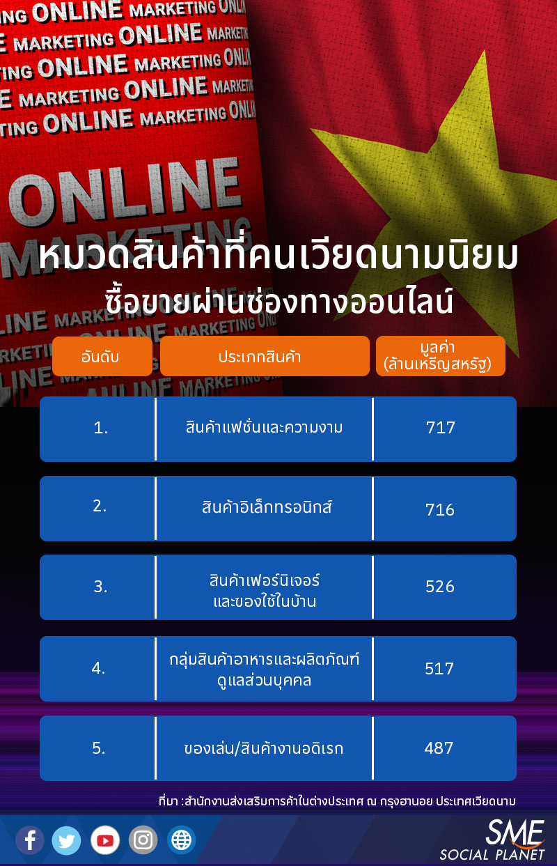 ช่องทางตลาดออนไลน์สำคัญๆ ในเวียดนาม ได้แก่