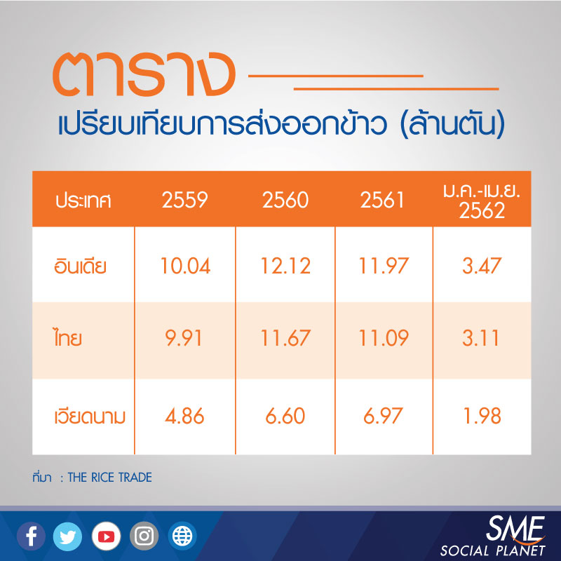 เวียดนามเป็นประเทศที่ส่งออกข้าวมากที่สุดเป็นอันดับ