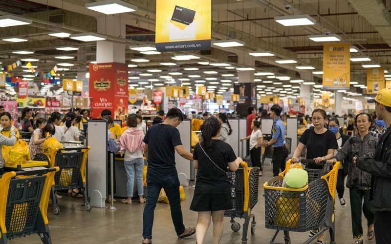 โดยเฉพาะซุปเปอร์มาร์เก็ตท้องถิ่น อย่างร้าน Co.opmart มีสินค้าเวียดนาม 90% ร้าน Satra มีสินค้าเวียดนาม 90-95% ร้าน VinMart มีสินค้าเวียดนาม 96% ส่วนซุปเปอร์มาร์เก็ตแบรนด์ต่างชาติ