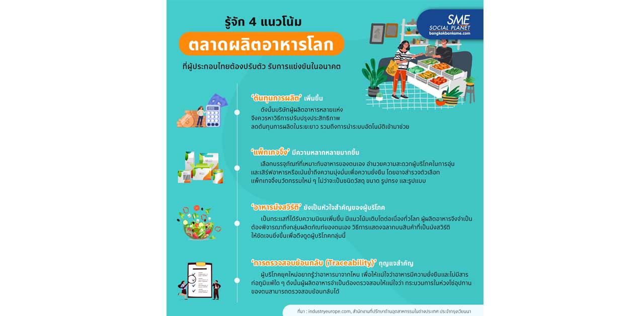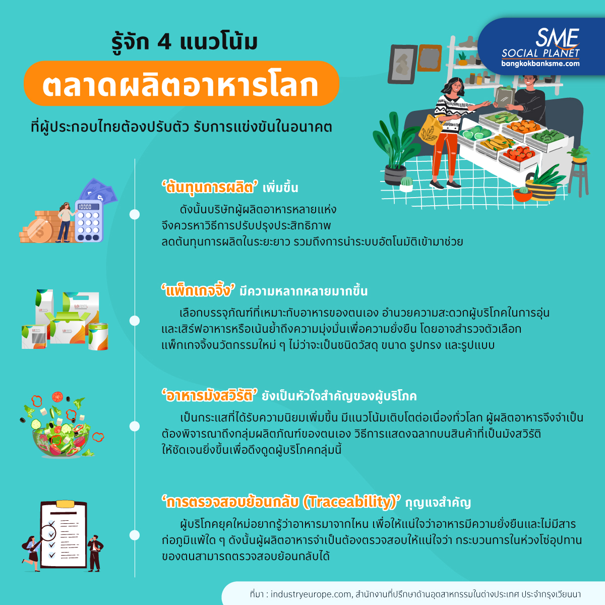 รู้ไว้..ปรับตัวได้ก่อน! Bangkok Bank SME ชวนรู้จัก 4 แนวโน้มที่จะเกิดขึ้นกับ ‘ตลาดผลิตอาหารโลก’ เพื่อให้ภาคธุรกิจ ผู้ประกอบการและ SME ไทย เตรียมพร้อมรับมือสิ่งที่จะเกิดขึ้น แล้ว Business Transformation องค์กร ปรับตัวตอบโจทย์ความต้องการผู้บริโภค มีที่ยืนในตลาดยุคดิจิทัล
