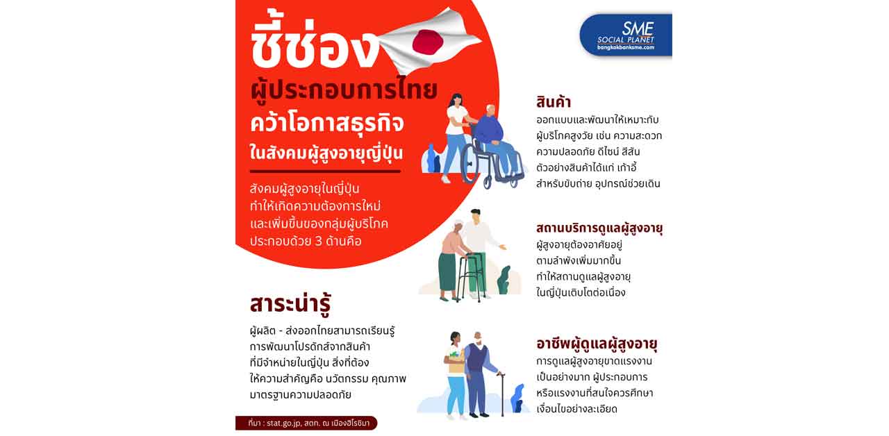 เพื่อที่ภาคธุรกิจ ผู้ประกอบการ SME ไทย จะได้ปรับตัวตอบโจทย์ความต้องการผู้บริโภคสูงวัยแดนปลาดิบ เป็นอีกหนึ่งหนทางสร้างรายได้ให้กับองค์กร
