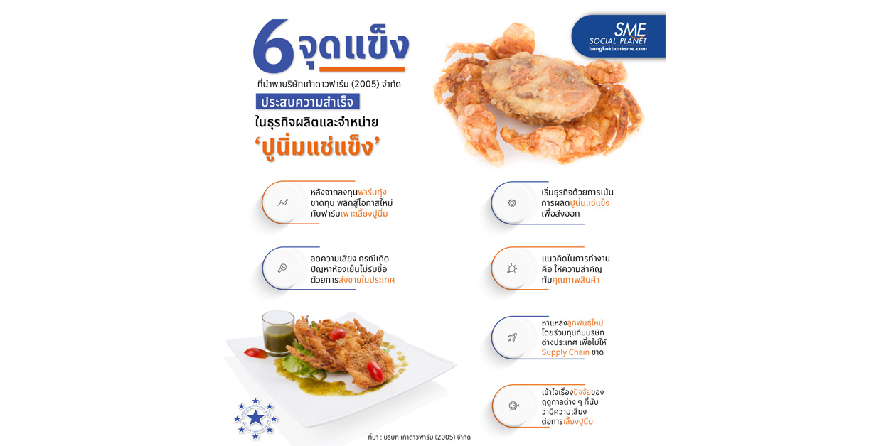 6 จุดแข็ง ที่นำพาบริษัทเก้าดาวฟาร์ม (2005) จำกัด ประสบความสำเร็จในธุรกิจผลิต และจำหน่าย ‘ปูนิ่มแช่แข็ง