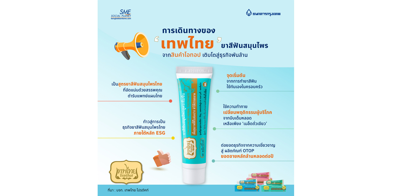 เปิดใจผู้บริหารแบรนด์ยาสีฟันสมุนไพร “เทพไทย” จากยาสีฟันที่ทำใช้กันเองภายในครอบครัว สู่สินค้า OTOP ที่สร้างยอดขายหลักล้านหลอดต่อปี