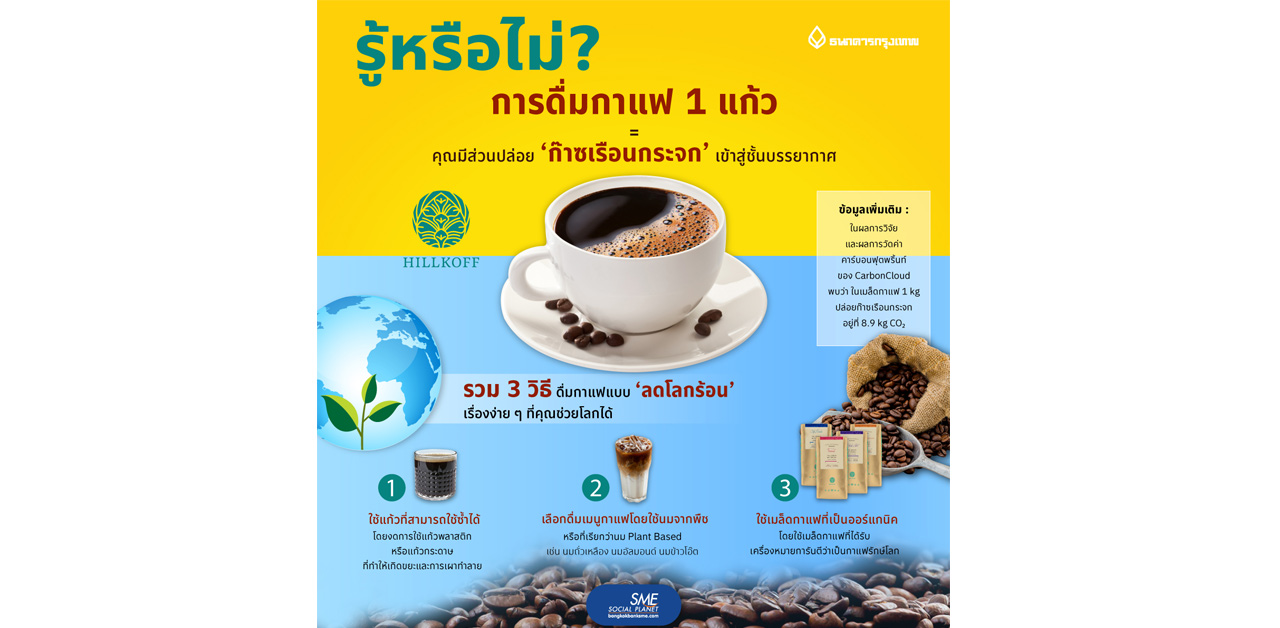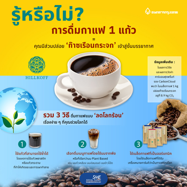 ...หลายคนที่เริ่มหันมาสนใจการลดโลกร้อน จึงเลือกดื่มเมนูกาแฟที่ช่วยลดการปล่อยก๊าซเรือนกระจกเข้าสู่ชั้นบรรยากาศมากขึ้น