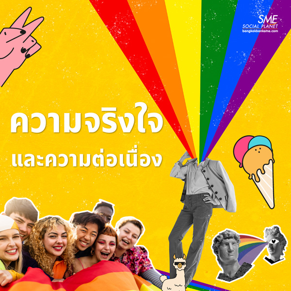 แน่นอนว่าผู้บริโภคสามารถแยกออกว่า แบรนด์ไหนที่สนับสนุนการต่อสู้เพื่อความเท่าเทียมทางเพศของเหล่า LGBTQIA+ อย่างแท้จริง และแบรนด์ไหนที่ทำไปเพียงเพื่อการค้าเท่านั้น ดังนั้นสิ่งแรกที่คุณควรมีคือ แสดงให้เห็นถึงความจริงใจอย่างต่อเนื่อง เพราะเขาคิดว่า หากคุณสนับสนุนพวกเขา เขาก็พร้อมจะสนับสนุนแบรนด์ของคุณด้วยเช่นกัน
