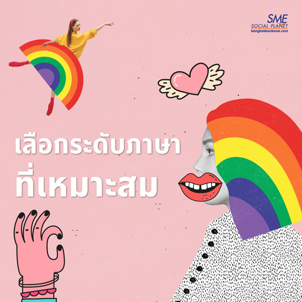 การสื่อสารระหว่างองค์กรไปยังผู้บริโภคถือเป็นสิ่งสำคัญที่คุณควรทำความเข้าใจให้ดี เพราะมีผู้คนจำนวนไม่น้อยที่ไม่เข้าใจชาว LGBTQIA+ คิดว่า จะต้องสื่อสารผ่านคำพูดที่ดูแรงหรือสนิทสนมเพียงอย่างเดียว ทั้งที่ความจริงแล้วควรใช้ระดับภาษาที่มีความเหมาะสมไม่ต่างจากผู้บริโภครายอื่น