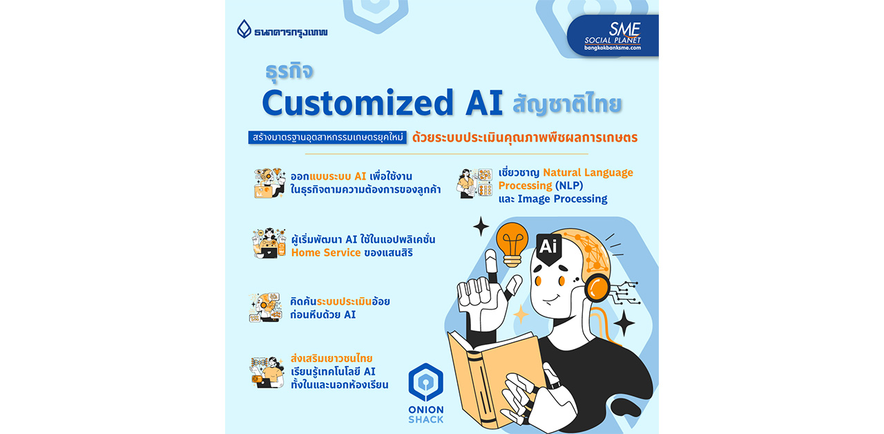 พามารู้จักกับ OnionShack ผู้ให้บริการ Customized AI ที่เชี่ยวชาญการพัฒนาระบบ Natural Language Processing และ Image Processing ออกแบบระบบ AI ตามความต้องการของลูกค้า ตัวช่วยในการทำธุรกิจที่ SME จับต้องได้