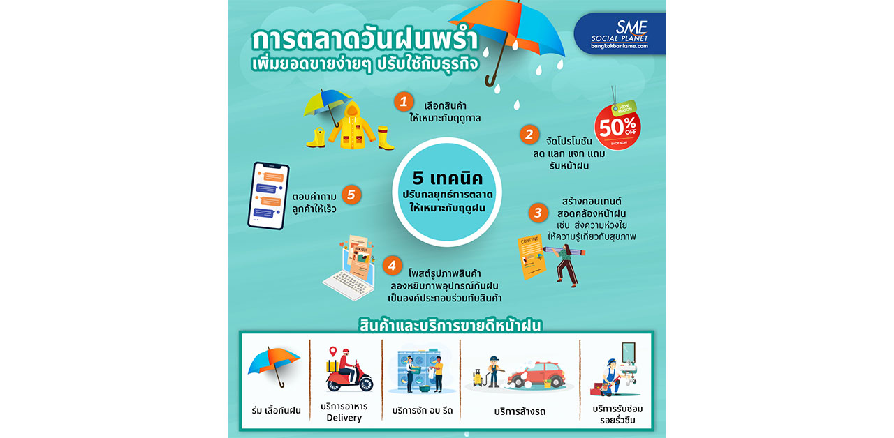 Bangkok Bank SME จึงอยากแนะนำเทคนิคการตลาดในวันฝนพรำ เพิ่มยอดขายง่ายๆ ปรับใช้กับธุรกิจ ทำได้ – ขายดี พร้อมส่องสินค้าและบริการ อะไรบ้างที่ขายดีหน้าฝน