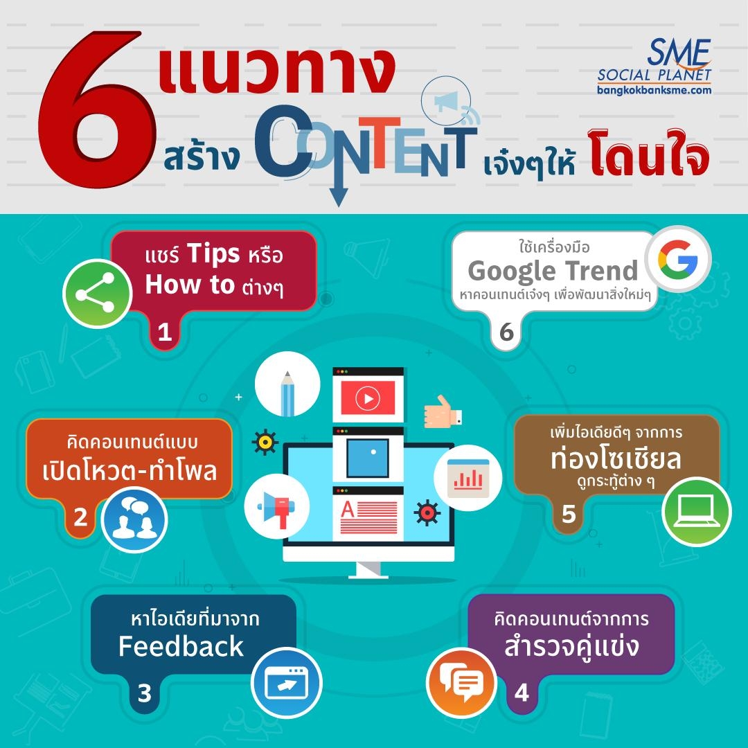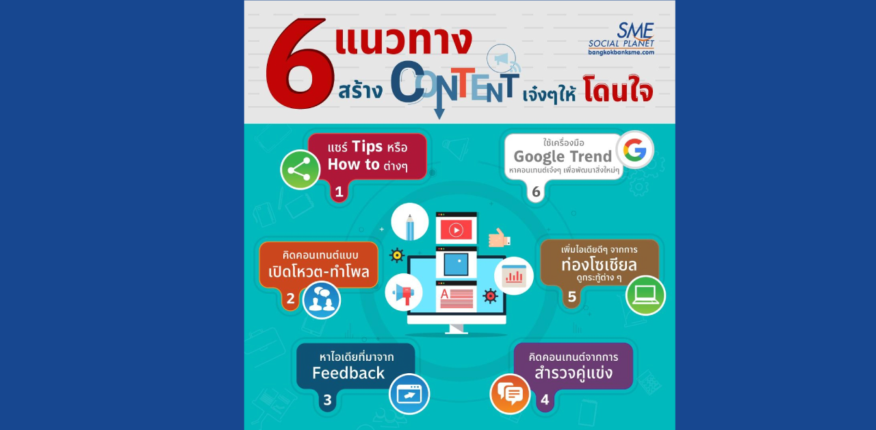 การสร้างคอนเทนต์ที่ตรงกับความต้องการลูกค้า ถือเป็นหัวใจสำคัญในการขายสินค้า เพราะจะช่วยสร้างการจดจำของร้าน ทำให้เกิดการรับรู้ มีส่วนร่วม จึงได้รวบรวม 6 แนวทางสร้างคอนเทนต์เจ๋งๆ ให้โดนใจ ที่จะช่วยให้เข้าไปนั่งในใจผู้บริโภค จนเกิดเป็นความต้องการซื้อสินค้าในเวลาต่อมา