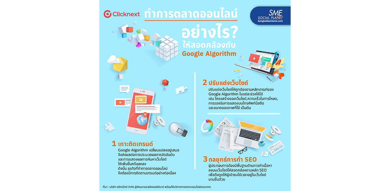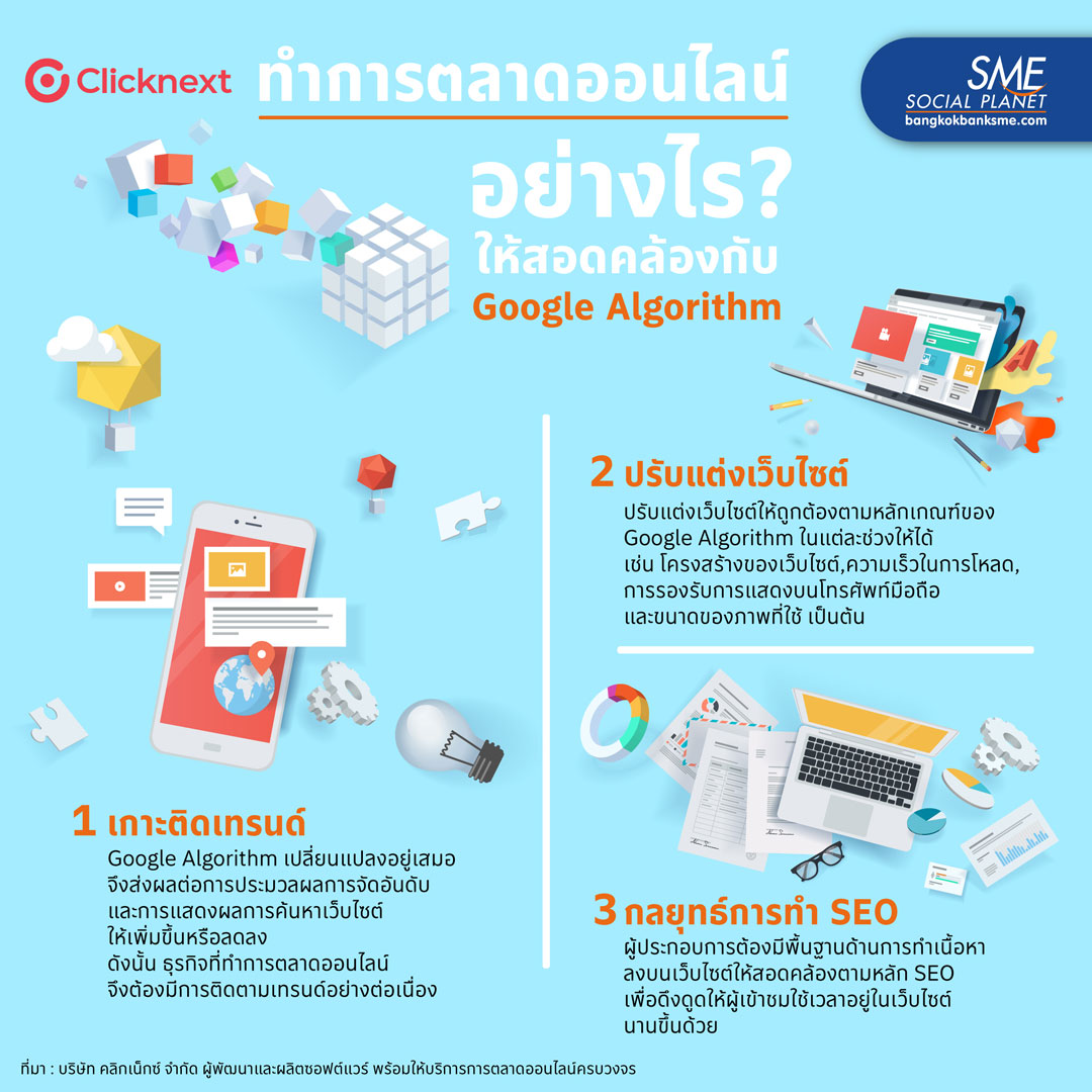สิ่งสำคัญของผู้ประกอบการที่ทำการตลาดออนไลน์ต้องทราบ คือ Google Algorithm มีเปลี่ยนแปลงอยู่เสมอ จึงส่งผลต่อการประมวลผล การจัดอันดับ และการแสดงผลการค้นหาเว็บไซต์