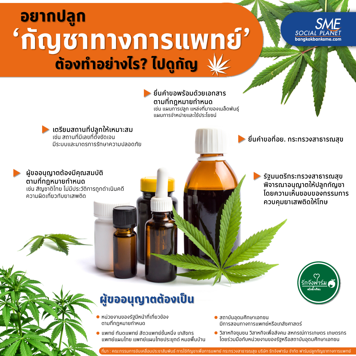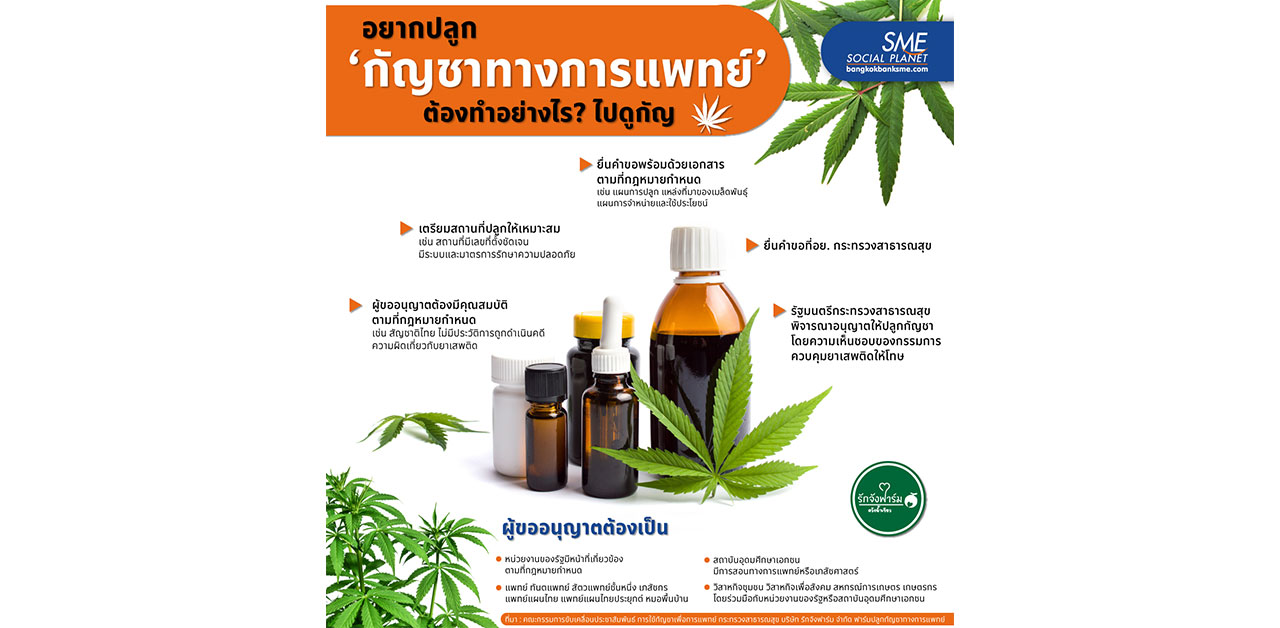 กระแส #กัญชาฟีเวอร์ กำลังมาแรง สำหรับผู้ที่สนใจปลูกกัญชาทางการแพทย์ Bangkok Bank SME มีข้อควรรรู้จากกระทรวงสาธารณสุข และบริษัท รักจังฟาร์ม จำกัด ฟาร์มปลูกกัญชาทางการแพทย์ อำเภอวังน้ำเขียว จังหวัดนครราชสีมา มาให้ได้ทราบ เพื่อที่การขออนุญาตปลูกกัญชาจะได้เป็นไปด้วยความราบรื่น