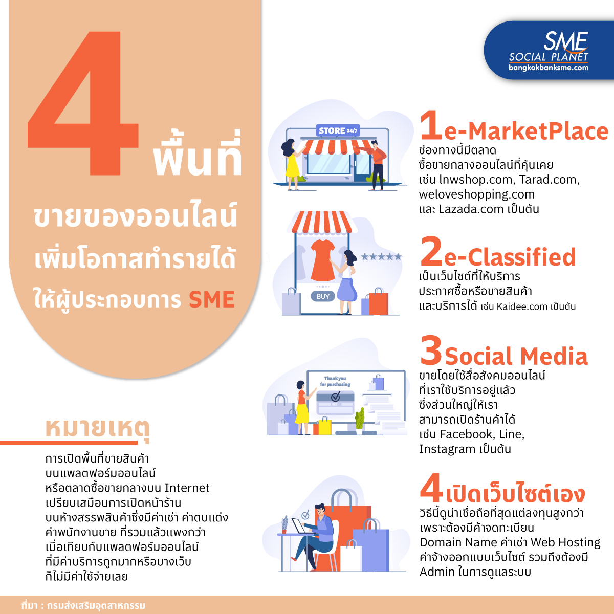 4 พื้นที่ ขายของออนไลน์ เพิ่มโอกาสทำรายได้