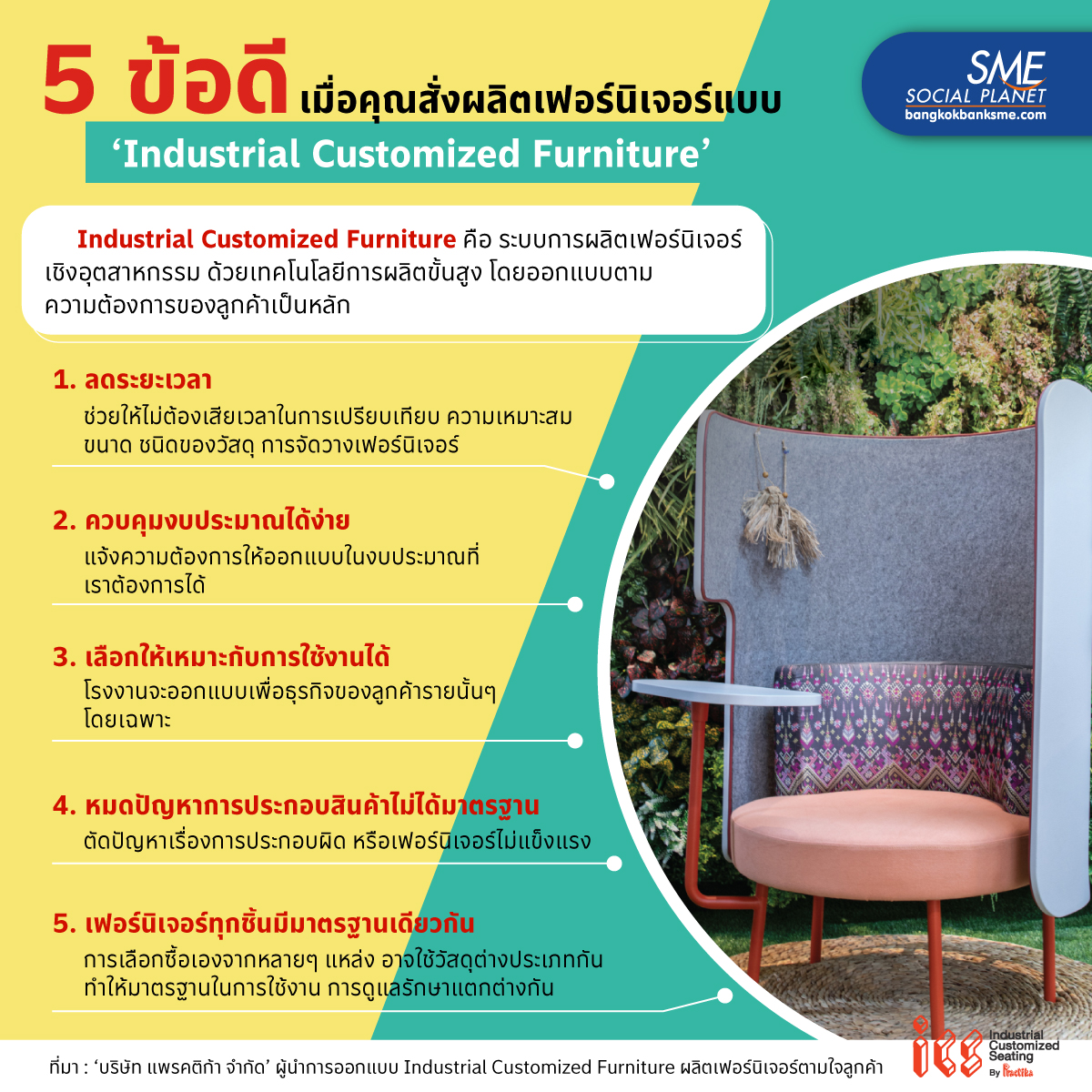 SME ที่กำลังเริ่มต้นธุรกิจ หรืออยากขยายกิจการ หากยังไม่รู้ว่าจะเลือกซื้อเฟอร์นิเจอร์เข้าบริษัทแบบไหนดี ลองพิจารณาการสั่งผลิตเฟอร์นิเจอร์ อย่างเช่น บริษัท แพรคติก้า จำกัด บริษัทผู้ผลิตเฟอร์นิเจอร์ ที่เป็นศูนย์กลางของ Industrial Customized Furniture รูปแบบโครงการ ที่ออกแบบให้ตามใจลูกค้า ว่ามีข้อดีอย่างไรบ้าง?