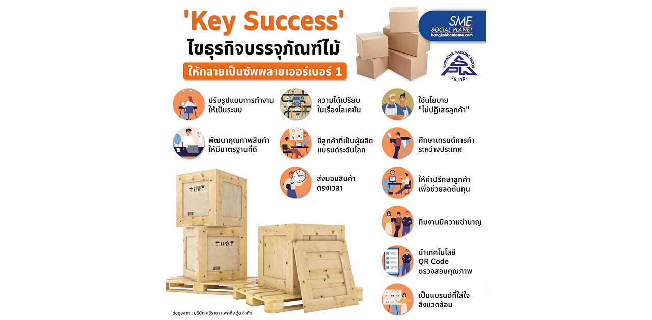 ดังกรณีศึกษาของ บริษัท ศรีราชา แพคกิ้ง วู้ด จำกัด ผู้ผลิตบรรจุภัณฑ์จากไม้ และกระดาษ พัฒนาคุณภาพและสร้างมาตรฐานเพื่อตอบโจทย์เทรนด์อุตสาหกรรมและการค้าให้พร้อมรับทุกบริบทของความเปลี่ยนแปลง และจากการเป็นซัพพลายเออร์แพ็กกิ้งไม้และกระดาษที่อยู่ในลำดับที่ 3 ลำดับที่ 4 ก็ขยับมาเป็นซัพพลายเออร์ลำดับที่ 1 ด้วย Key Success เหล่านี้ ที่สามารถนำพาธุรกิจเติบโตแบบก้าวกระโดด