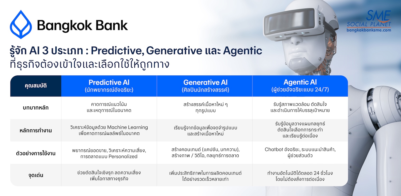วันนี้ Bangkok Bank SME ชวนมาทำความรู้จักกับ AI 3 ประเภท ที่ช่วยยกระดับแนวทางการทำธุรกิจให้ชาญฉลาดและทรงพลังยิ่งขึ้น