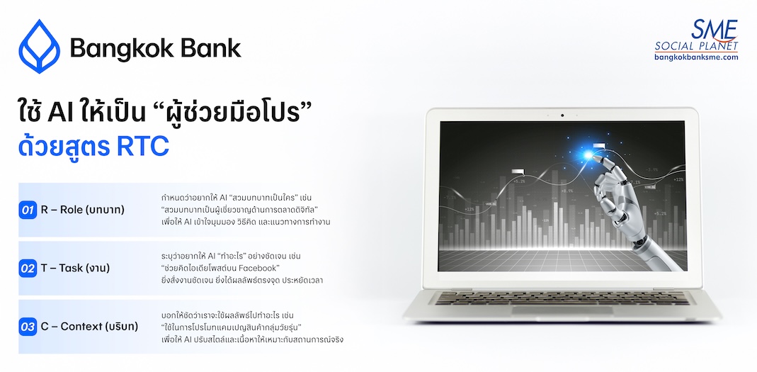 Bangkok Bank SME แนะนำสูตร 3 ขั้นตอน ที่ช่วยให้สื่อสารกับ AI ได้แม่นยำขึ้น เหมาะสำหรับเจ้าของธุรกิจและคนทำงานที่ใช้ AI เป็นตัวช่วยประจำวัน