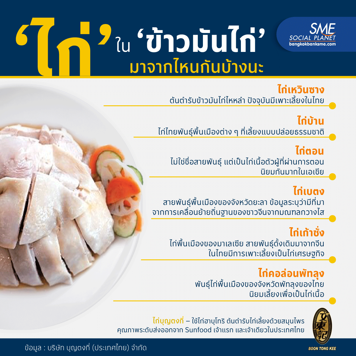 รายละเอียดเพิ่มเติม : https://www.bangkokbanksme.com/en/boontongkee-master-franchise-singapore-chicken-rice