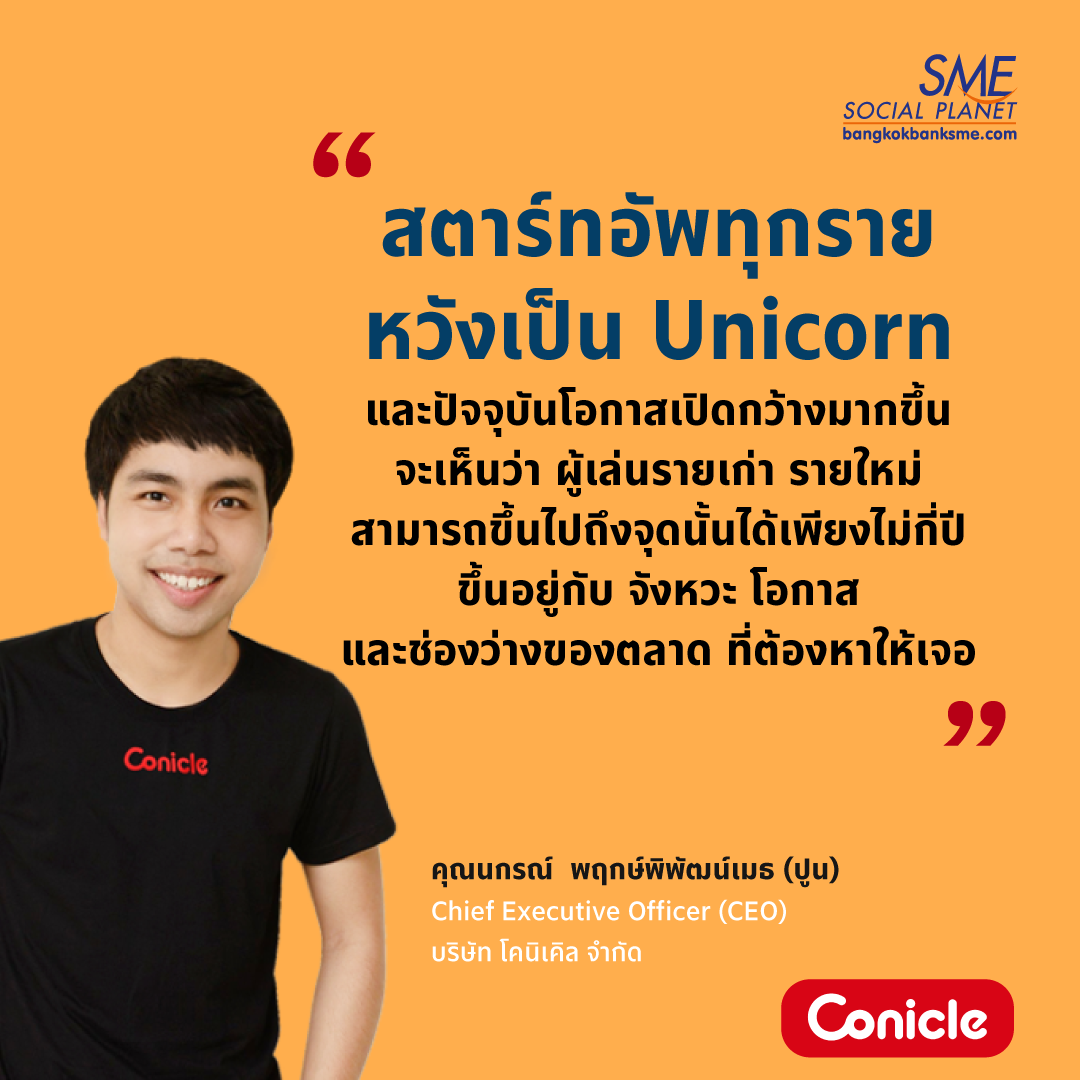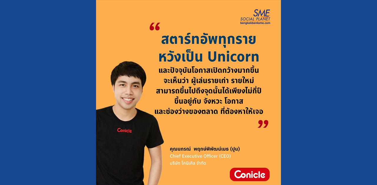 การก้าวสู่ธุรกิจที่มีมูลค่าเกิน 1 พันล้านเหรียญสหรัฐฯ อาจไม่ใช่เรื่องยาก ขณะที่รูปแบบธุรกิจของสตาร์ทอัพในปัจจุบันก็เอื้อต่อการระดมทุน และสามารถเติบโตอย่างรวดเร็ว ด้วยเหตุนี้ปัจจัยสำคัญจึงอยู่ที่ จังหวะ โอกาส และช่องว่างที่ต้องหาให้เจอ จากแนวคิด คุณนกรณ์ พฤกษ์พิพัฒน์เมธ (ปูน) Chief Executive Officer (CEO) บริษัท โคนิเคิล จำกัด