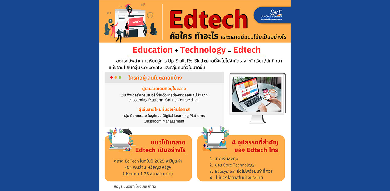 Edtech สตาร์ทอัพด้านการเรียนรู้ ธุรกิจมาแรงท่ามกลางวิกฤตการระบาดของ COVID-19 และพฤติกรรมการเรียนรู้ที่ปรับเปลี่ยนไปตามสถานการณ์ เรามาศึกษาตลาดนี้กัน ดูว่าแนวโน้มตลาดนี้มาแรงแค่ไหน อุปสรรคสำคัญคืออะไร และใครคือผู้เล่นในตลาดนี้บ้าง